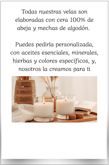 Cada color, aroma y combinación de elementos tiene un propósito: abrir caminos, atraer amor, limpiar energías, proteger, sanar o potenciar la abundancia. Al encender una de ellas, activas la fuerza del fuego -elemento de purificación y transmutación- para que tus deseos se eleven al universo on claridad y poder.